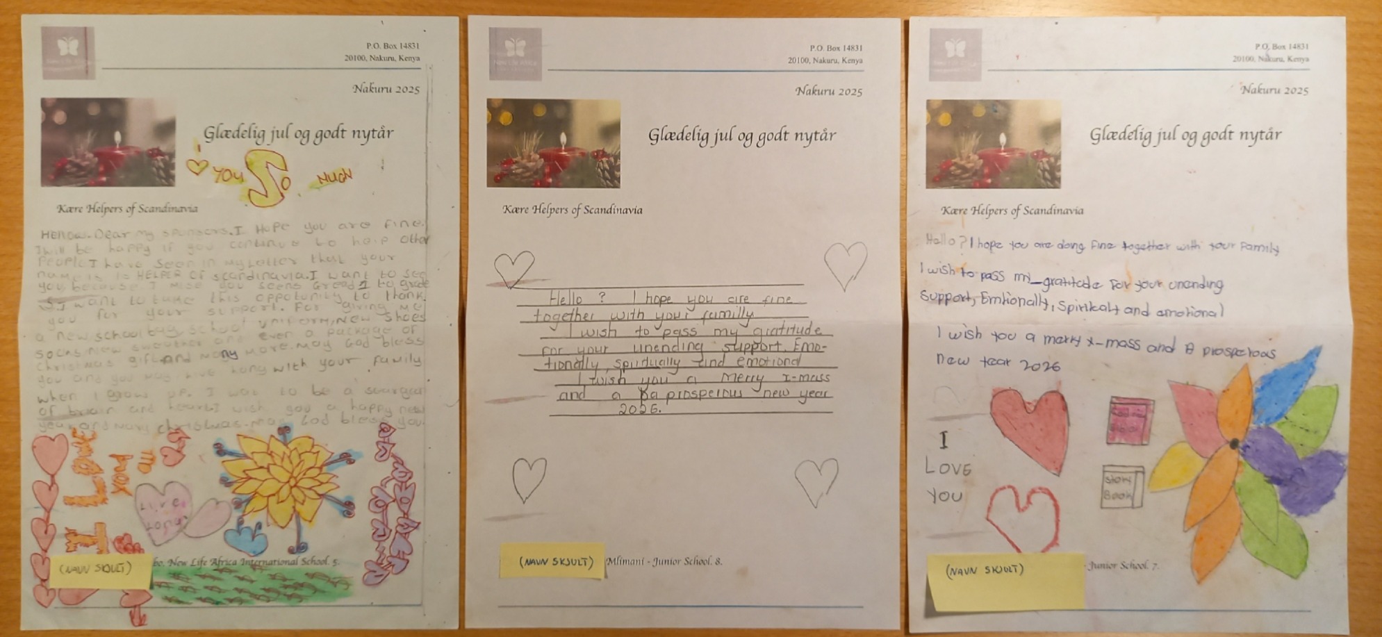 Rett før jul kom disse tre brev fra Lucy, Yvonne og Neema.