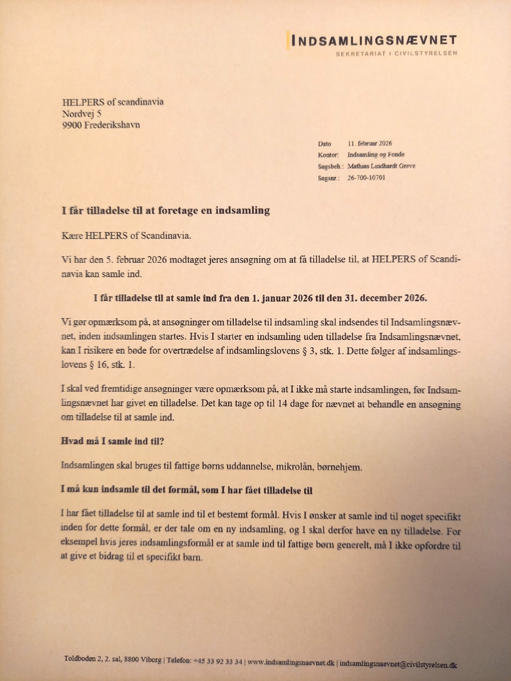 HELPERS er godkjent av Indsamlingsnævnet