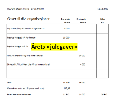 Året nærmer seg slutten, og vi vet hvor mange kroner vi kan sende til våre partnerorganisasjoner.